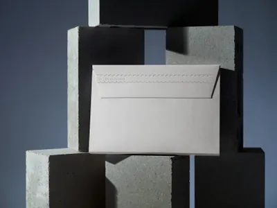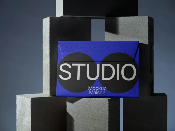 图穷联素材库 » 高质量工业砖块创意场景信封品牌设计提案展示样机模板 Envelope EV-BRK-02