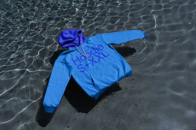 高质量无CG实拍漂浮在水面的连帽衫卫衣服装设计贴图展示样机模板 Hoodie AP-D-08