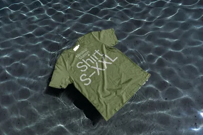 高质量无CG实拍漂浮在水面的T恤服装设计贴图展示样机模板 T-Shirt AP-D-01