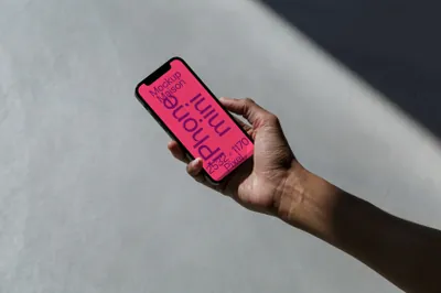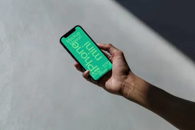图穷联素材库 » 高级阴影手持苹果手机App设计UI贴图展示样机模板 iPhone mini PH-E-06