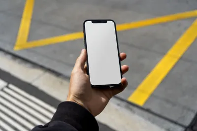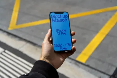 图穷联素材库 » 高级阴影手持苹果手机App设计UI贴图展示样机模板 iPhone Pro PH-C-05