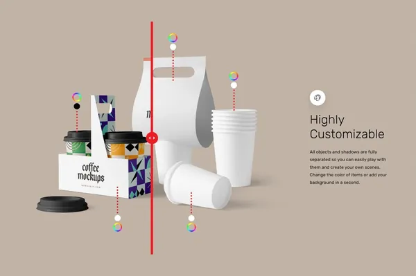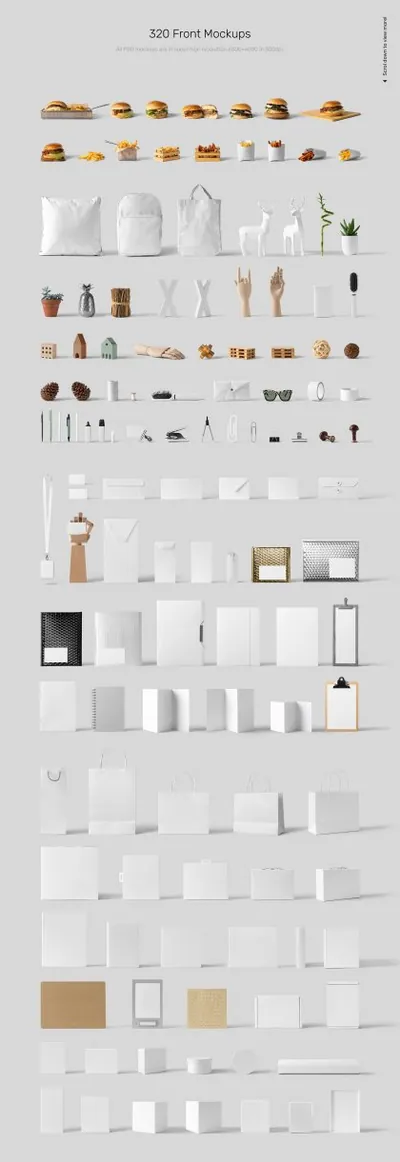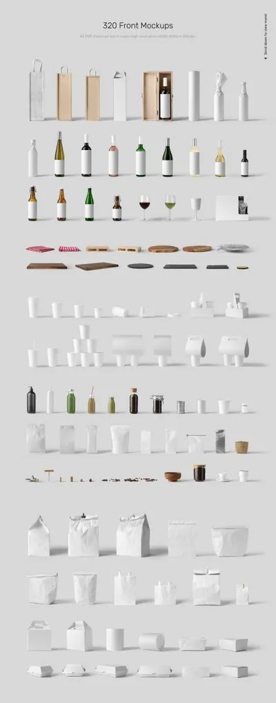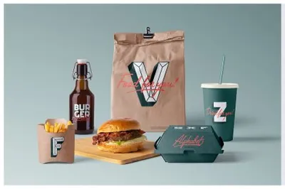 图穷联素材库 » 高级外卖餐饮美食品牌包装设计贴图场景展示样机模板 Front View Branding Mockups