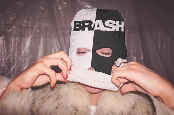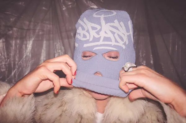 女士头戴巴拉克拉法帽头套潮牌服饰设计贴图展示样机模板 BRASH WHITE BALACLAVA 02