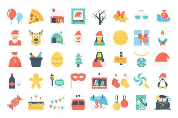 扁平化圣诞节图标 100 Flat Christmas Icons