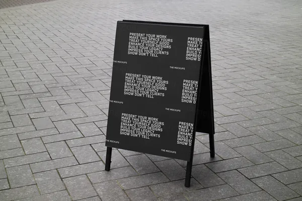 图穷联素材库 » 高质量城市都市街道店铺招牌A字广告牌设计贴图展示样机模板 TM-SF-SIGN-001