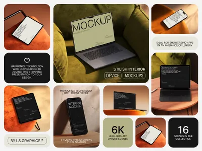 利用我们一系列精致的现场模型展示您的视觉效果,突出时尚的 iPhone、iPad 和 MacBook,背景是精致的室内装饰。这些模型将最新的小玩意与高雅的家居装饰融为一体,为您提供了一种引人注目的方式,可以在设计、舒适和创新交织的场景中展示您的作品。这些模型非常适合从营销视觉效果到设计演示等一系列应用,将为您的创意作品增添真实感和优雅感。