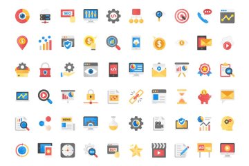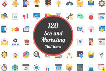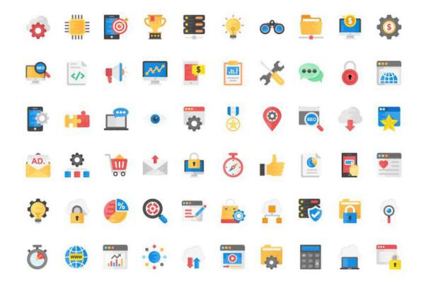 图穷联素材库 » 关于SEO和市场营销主题的图标 Flat Icons on SEO and Ma