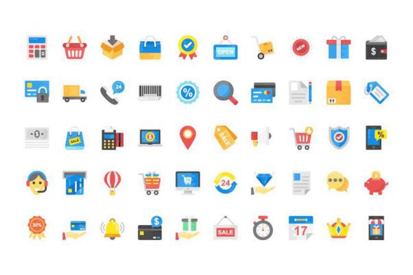 图穷联素材库 » 购物和商业扁平化图标 Shopping and Commerce Flat Ic