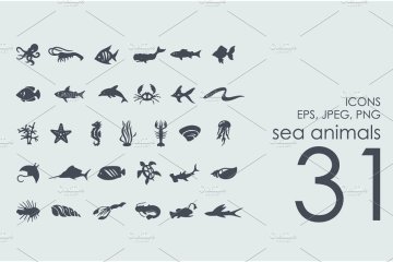 图穷联素材库 » 海洋生物图标 31 sea animals icons