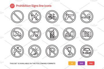 图穷联素材库 » 禁止标志线图标集 Prohibition Signs Line Icons Se