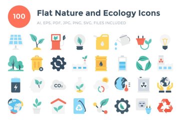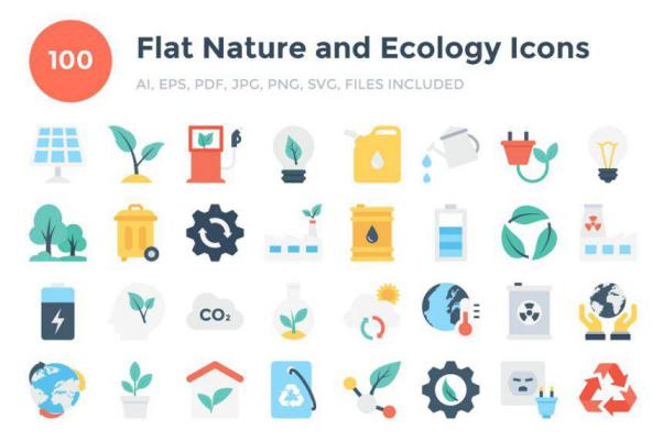 自然和生态图标 100 Flat Nature and Ecology Icon