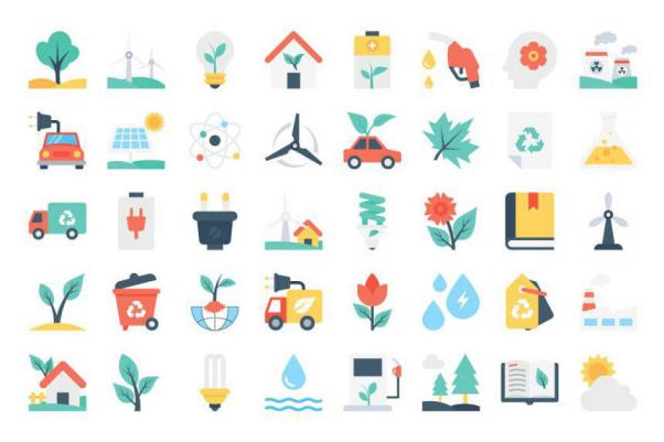 图穷联素材库 » 自然和生态图标 100 Flat Nature and Ecology Icon