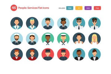 图穷联素材库 » 人物服务扁平化图标 People Service Flat Icons Set