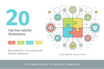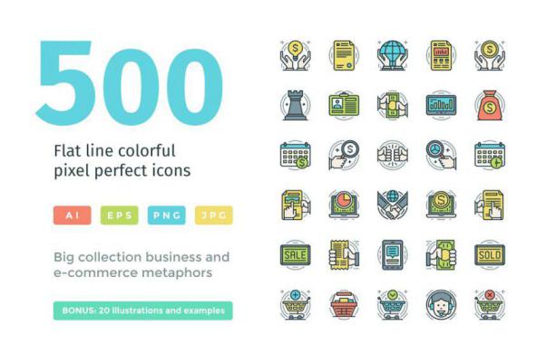 彩色的扁平化线型图标 Colorful Flat Line Icons
