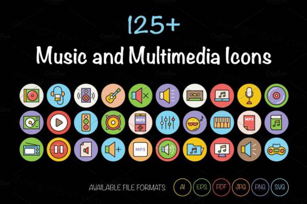 图穷联素材库 » 音乐媒体图标 125 Music and Multimedia Icons