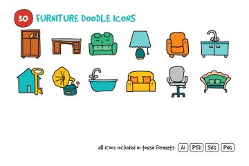 家具涂鸦图标集 Furniture Doodle Icons Set