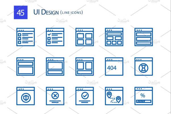 图穷联素材库 » UI设计线型图表 45 UI Design Line Icons