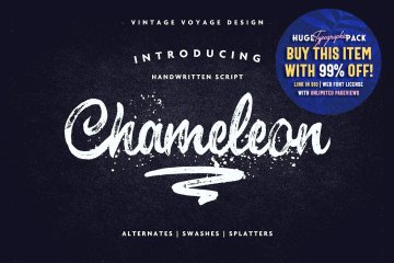 图穷联素材库 » 大气粗犷的笔刷字体 Chameleon Impressive Brush Script