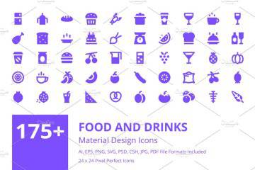 图穷联素材库 » 美食饮料图标 175 Food and Drinks Material Ico