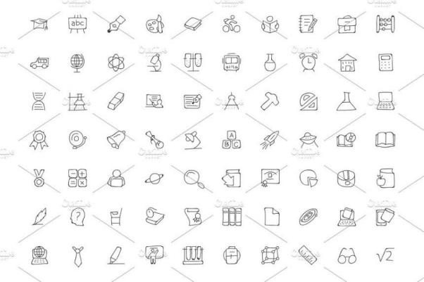 图穷联素材库 » 手绘教育涂鸦图标 200 Education Hand Drawn Doodle