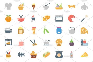 彩色食物矢量图标 250 Colored Food Vector Icons