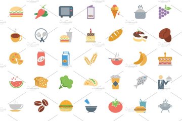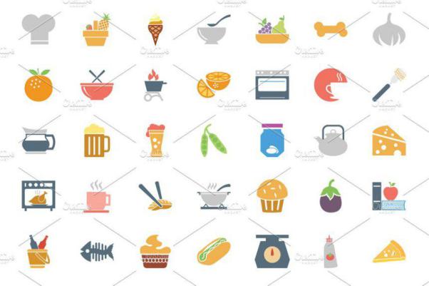 图穷联素材库 » 彩色食物矢量图标 250 Colored Food Vector Icons