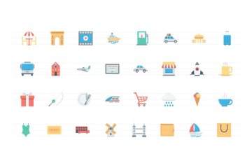旅行素材矢量图标 144 Flat Travel and Tourism Ico