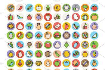 图穷联素材库 » 水果蔬菜图标 100 Fruits and Vegetables Icons
