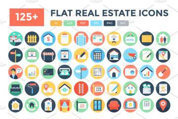 图穷联素材库 » 扁平化房地产图标 125 Flat Real Estate Icons
