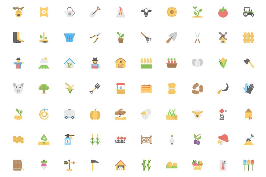 图穷联素材库 » 农业平面矢量图标 100 Farming Flat Vector Icons