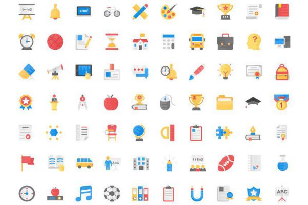图穷联素材库 » 教育和学校矢量图标 140 Education and School Flat