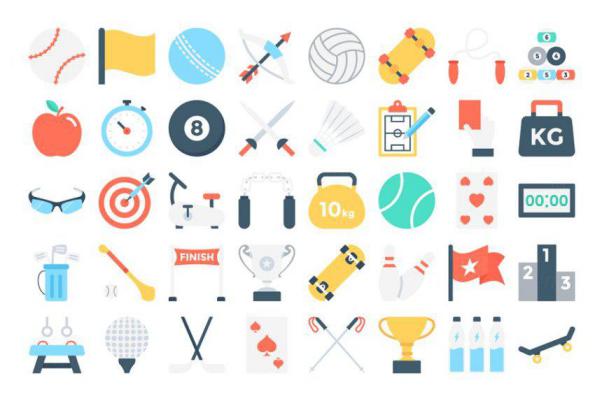图穷联素材库 » 运动矢量图形图标 140 Flat Sports Icons