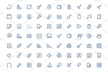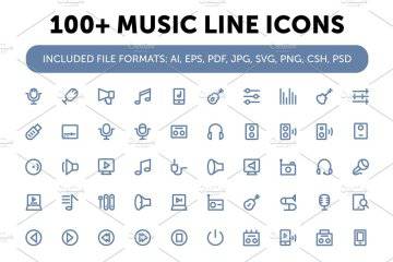图穷联素材库 » 音乐矢量图标素材 100 Music Line Icons