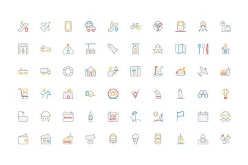 图穷联素材库 » 旅行矢量图标 150 Travel Colored Line Icons