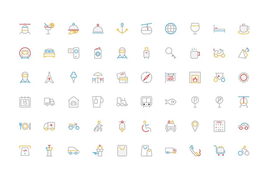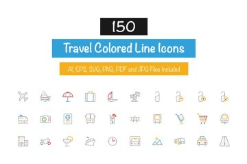 旅行矢量图标 150 Travel Colored Line Icons