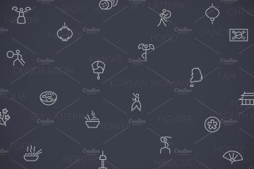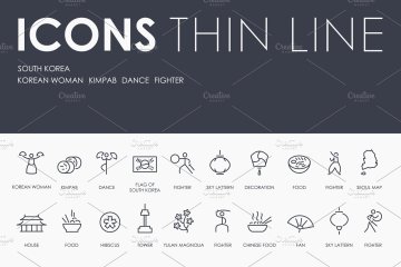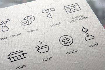 图穷联素材库 » 韩国元素主题线型图标套装 South Korea thinline icons
