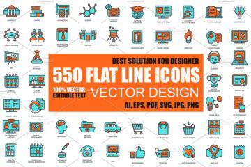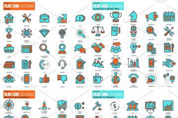 图穷联素材库 » 扁平化的线型图标素材 Flat Line Web Icons