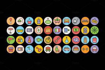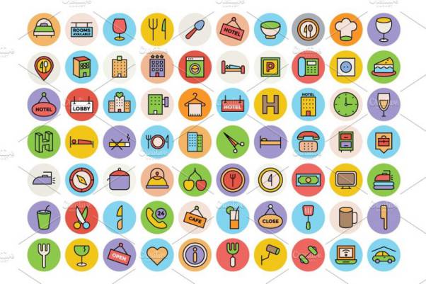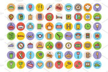 图穷联素材库 » 酒店餐厅相关的彩色图标套装 125 Restaurant Icons Pack