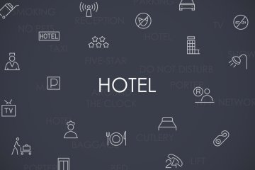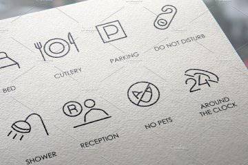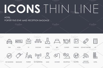 图穷联素材库 » 酒店相关主题的线型图标合集 Hotel thinline icons