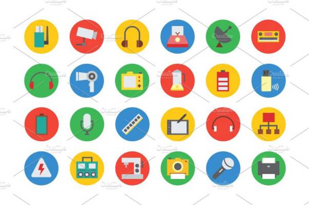 图穷联素材库 » 扁平化的电子产品图标合集Electronics Vector Icons