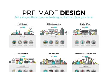 图穷联素材库 » 简约的线条彩色城市图标 Linero Templates