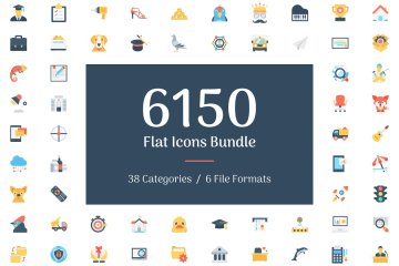 一套完美的图标图形素材 6150 Flat Icons Bundle