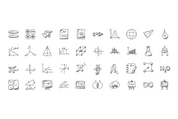 数字涂鸦图标 100 Mathematics Doodle Icons