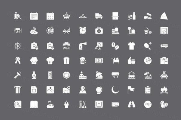 图穷联素材库 » 250个酒店餐馆矢量图标 250 Hotel and Restaurant Ve