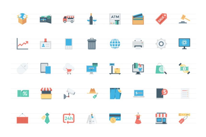 图穷联素材库 » 扁平化购物电商图标 192 Flat Shopping and eCommerc