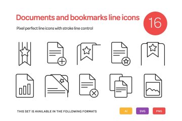 文件和书签相关的线型图标素材 Documents and Bookmarks