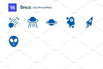 图穷联素材库 » 宇宙太空图标 16 Space Glyph Icons
