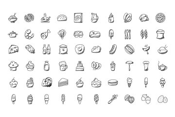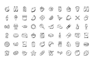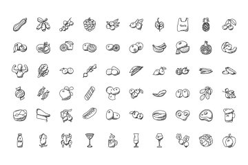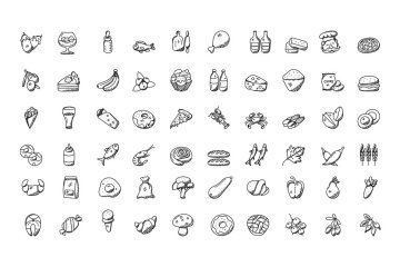 图穷联素材库 » 手绘食物图标 300 Food Hand Drawn Doodles Icons
