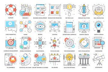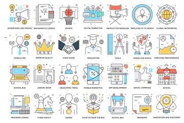 图穷联素材库 » 创意彩色线型图标 525 Flat Colored Line Icons