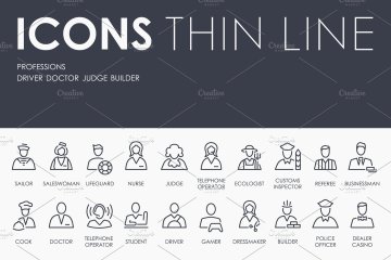 图穷联素材库 » 专业职业的细线图标 Professions thinline icons